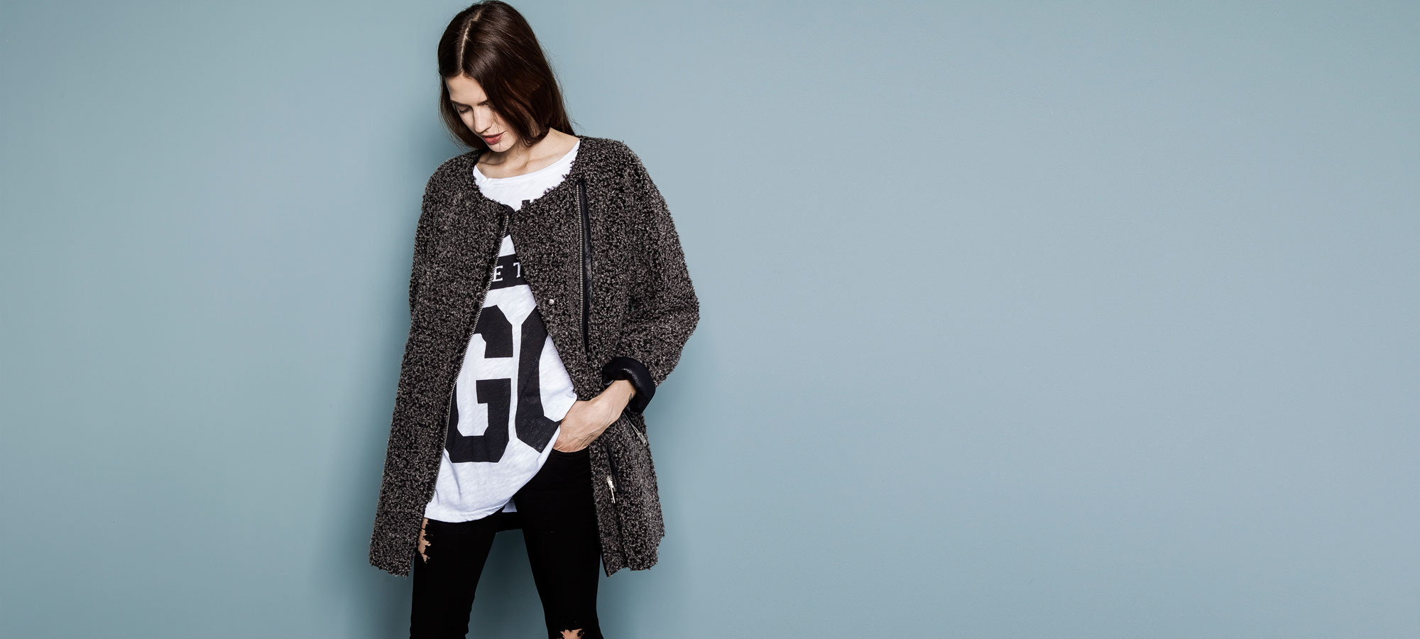 Andava eu descansadinha da vida a espreitar as novidades dos sites quando me reparei com um casaco muito interessante. Primeiro quero um casaco cinzento. Não só por ser neutro e dar bem com qualquer trapinho, mas também queria com fecho e que fosse mais comprido do que os que tenho. Adorei este era perfeito. Mas não era. Só ficou perfeito quando percebi que era reversível e tinha opção de se usar uma espécie de cabedal falso. Pois, não é a parte mais bonita do casaco, verdade seja dita, mas quando estiver a morrer de frio posso sempre virar a parte de pelo (não sei bem que material é) e ficar mais quentinho. É da nova coleção da Pull and Bear e custa 45,99. Acho que não é um preço muito elevado e, com o dinheirinho que me derem, vai ser de certezinha absoluta, o investimento deste Inverno. Este e a parka. Não se esqueçam.